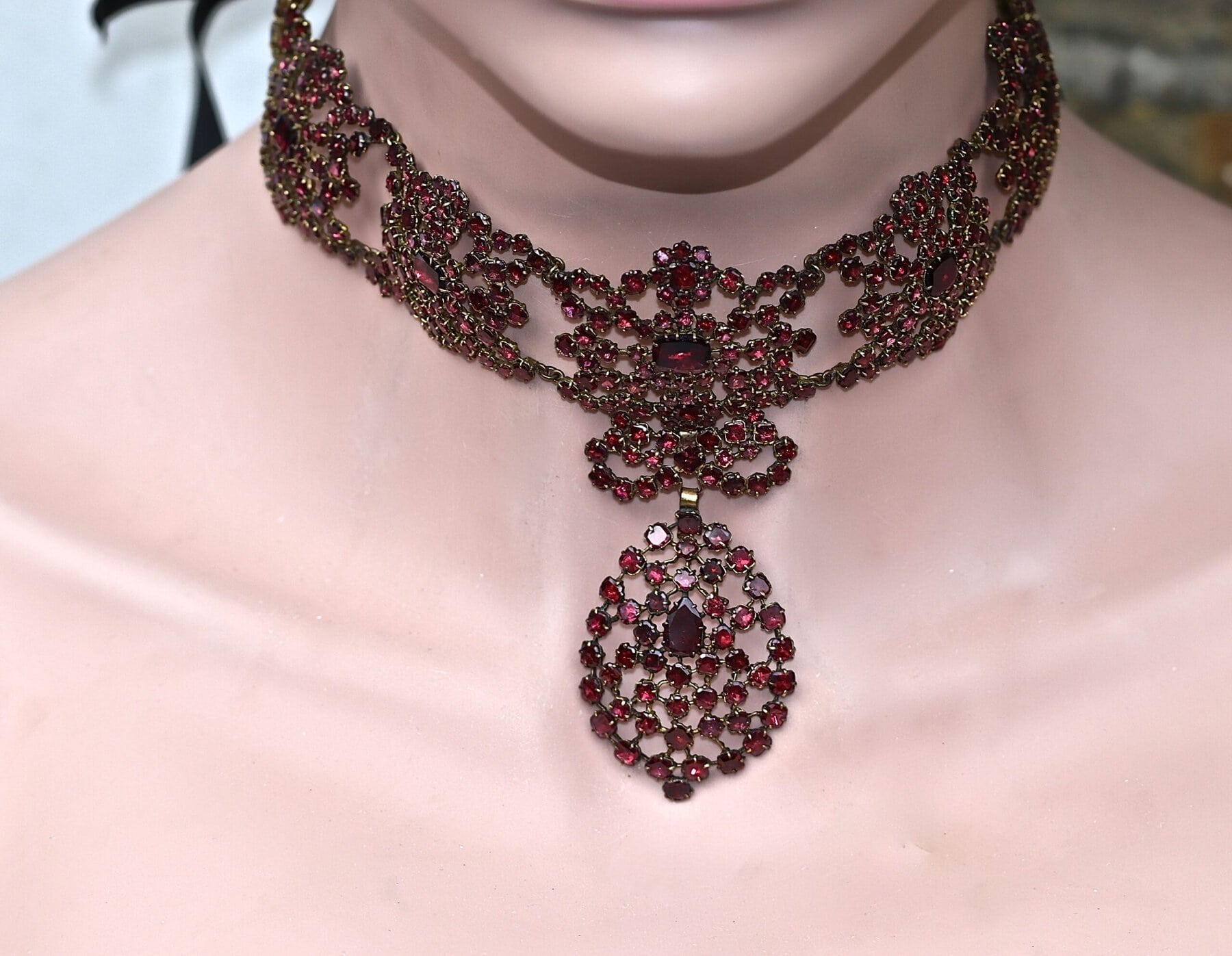 Georgian garnet ribbon necklace